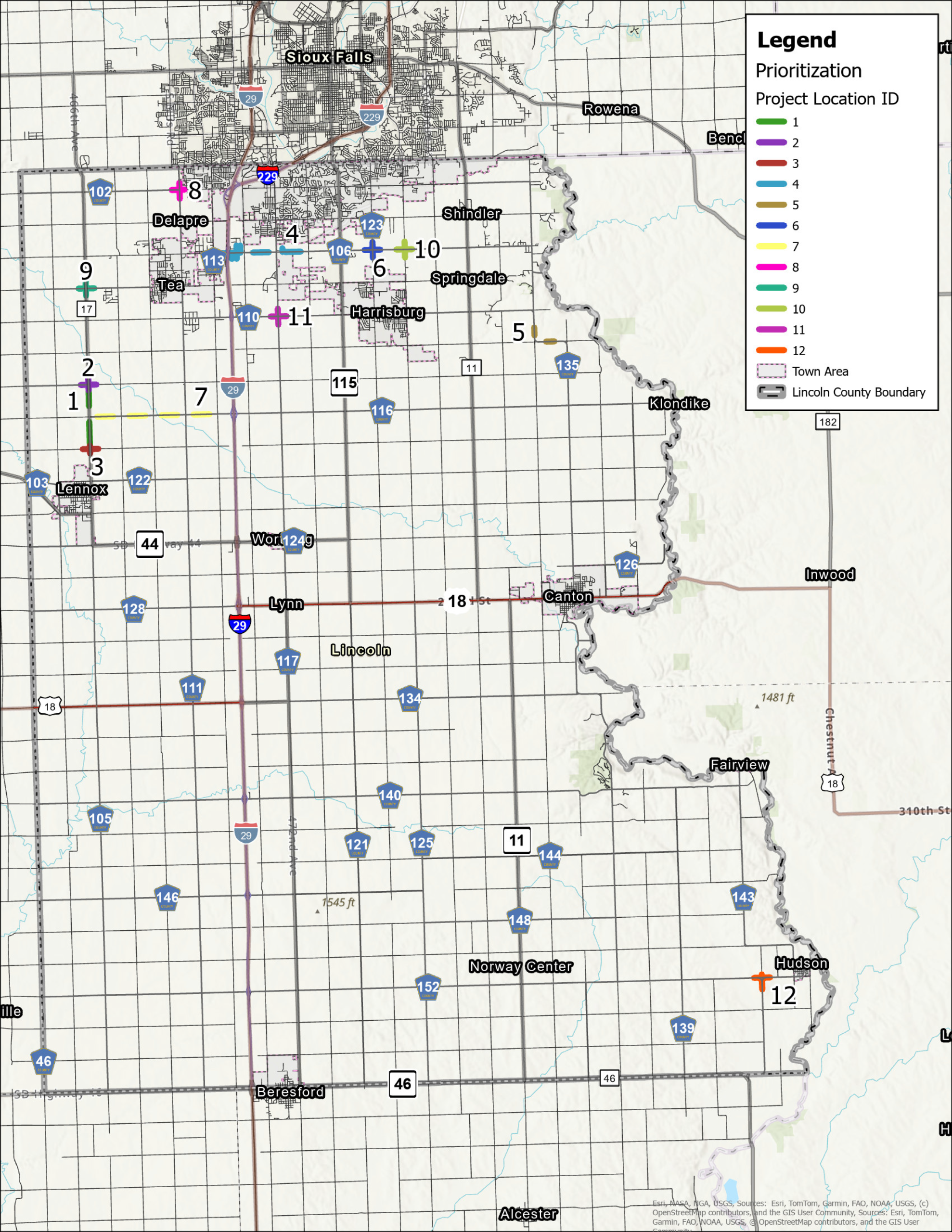 - County Road 116 from CR 105 to I-29
